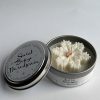 Świeca sojowa w puszce z drewnianym knotem zdobiona Stokrotką z wosku.